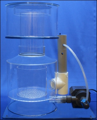 Der Abschäumer ist für die Unterbringung in ein Filteraquarium konstruiert. Grundfläche 425 x 275 mm Gesamthöhe 570 mm mit Schaumtopf - benötigt werden aber 600 mm. Der Wasserstand im Filteraquarium sollte mindestens 180 - 200 mm betragen um eine gute Abschäumung zu erzielen. Der Abschäumer ist für den Einsatz von Ozon geeignet. Hierzu wird ein zweiter Anschluss im Schalldämpfer benötigt, dort wird das Ozongerät angeschlossen und die Luftzufuhr eingestellt. Wichtig: Um Leistungsverluste zu verhindern, sollten alle Luftzufuhrbohrungen ca. alle 8 Wochen von Salzablagerungen befreit und gereinigt werden.